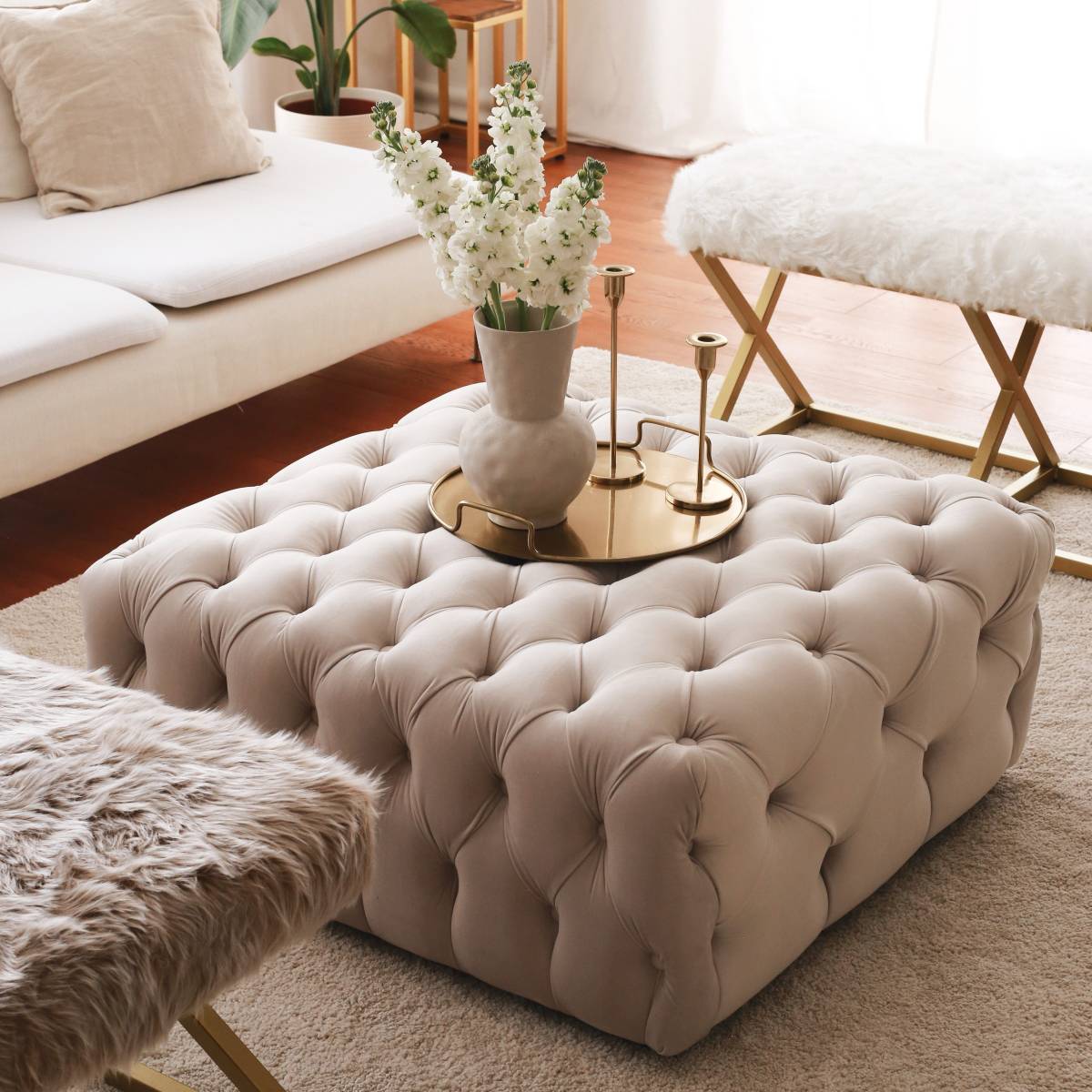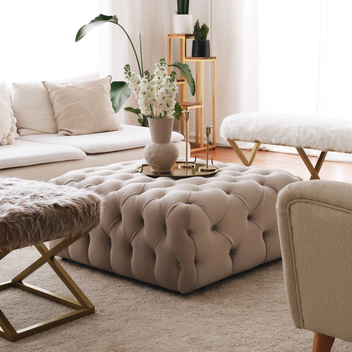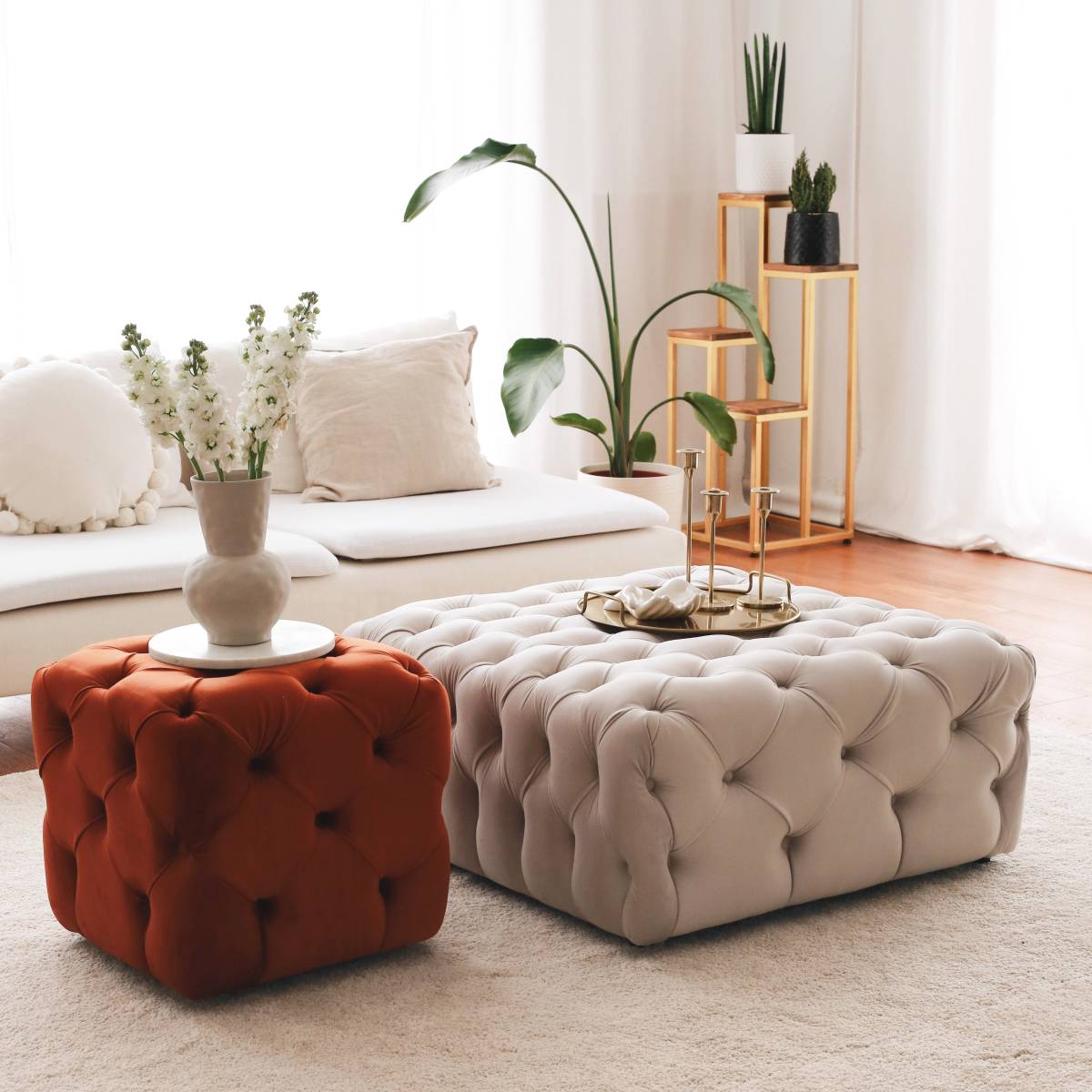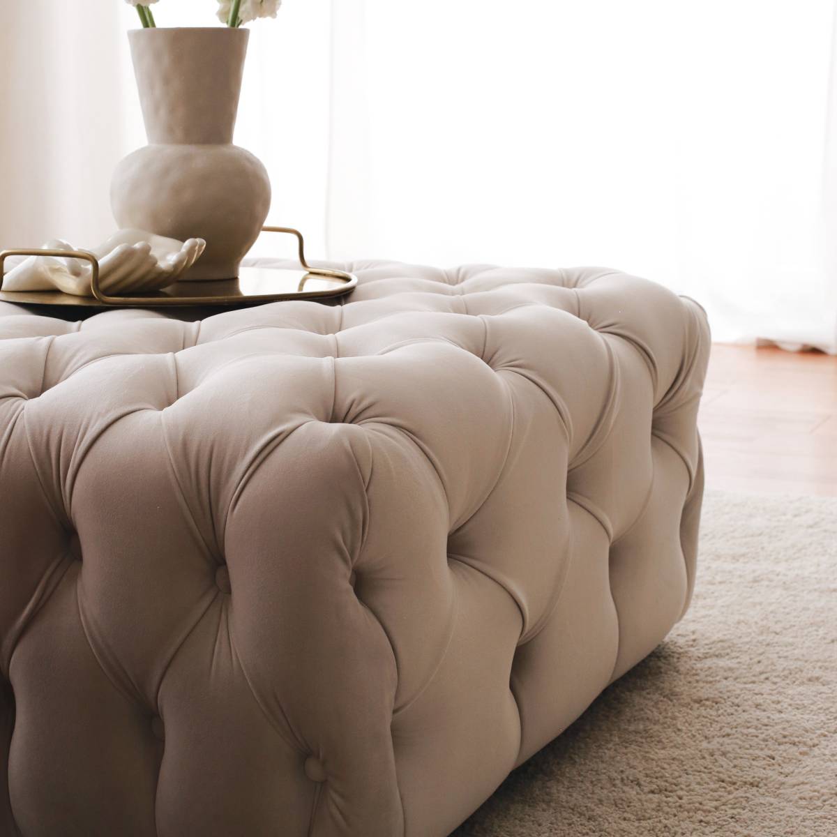Ce pouf chester sera le détail le plus élégant de votre maison. Il peut être utilisé comme table basse ou assise supplémentaire dans le coin de votre salon . Ce pouf, avec un look très élégant, et avec une couture capitonné spéciale ajoutera une ambiance chaleureuse à votre salon. Il est conçu avec un tissu en velours connu pour sa texture douce et élégante, qui est antitache et facile à nettoyer.