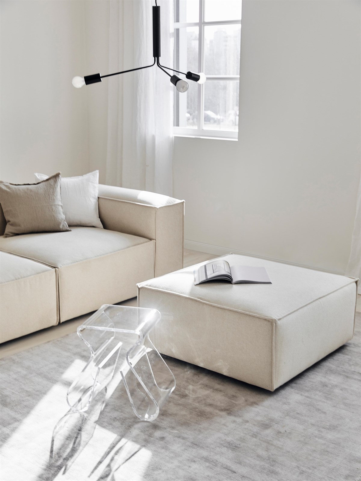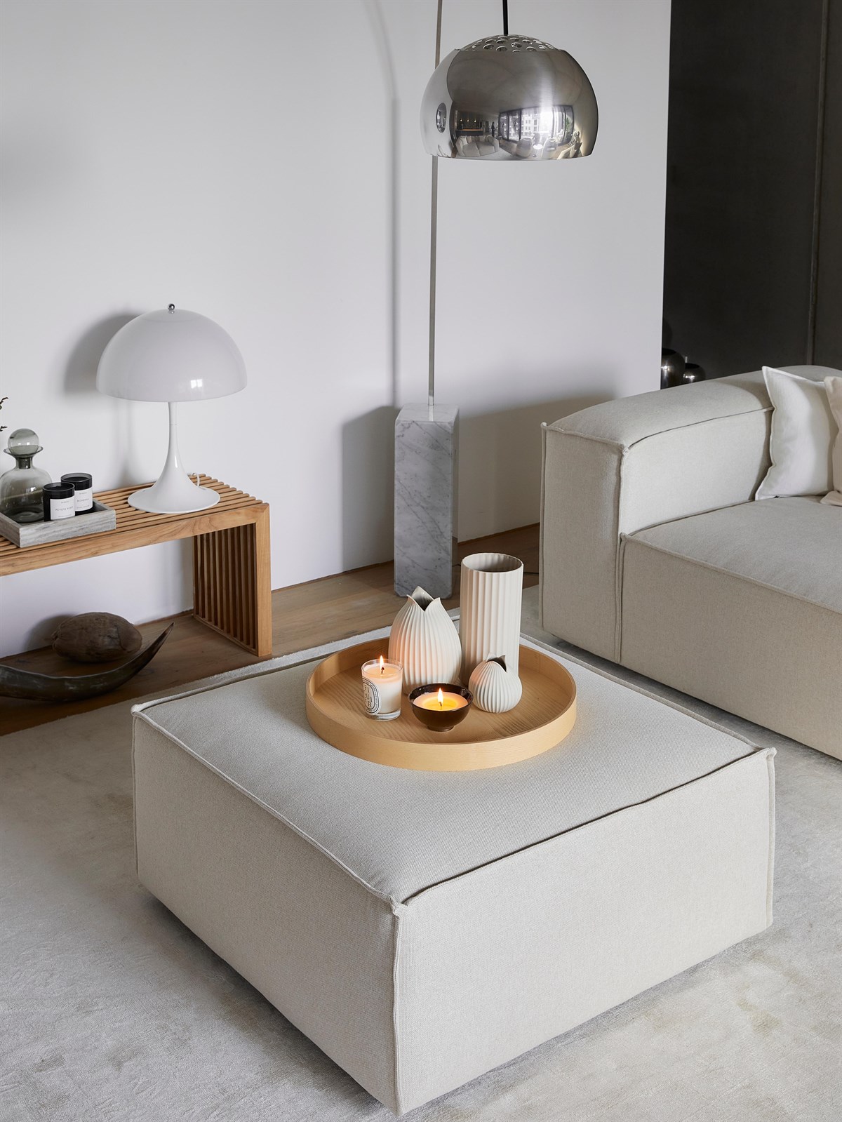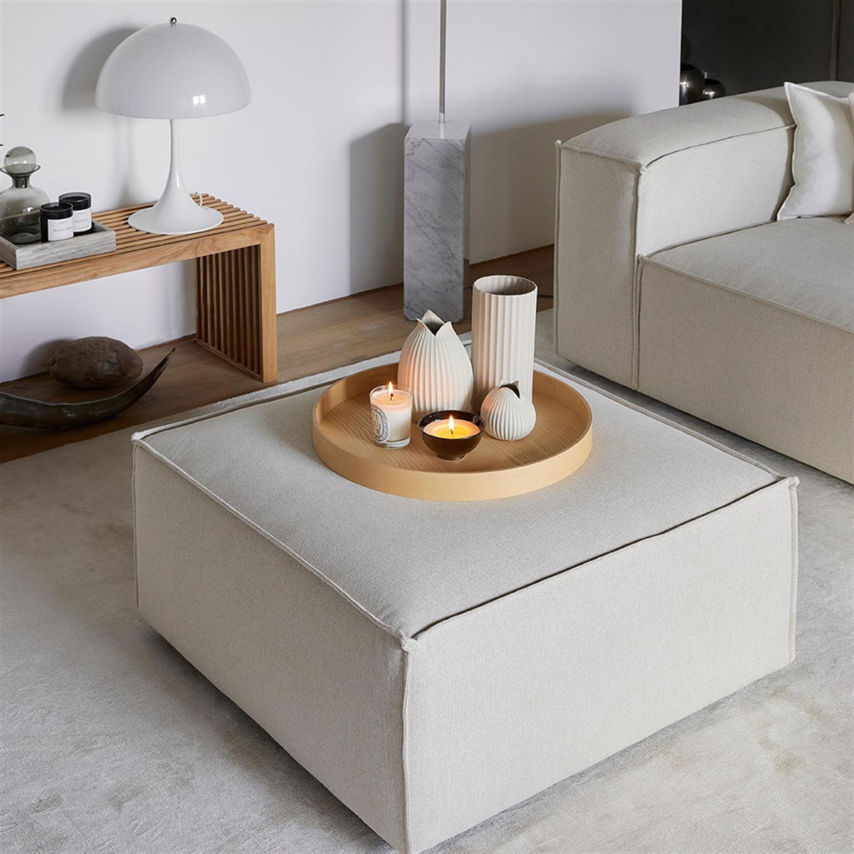 Avec son mécanisme de verrouillage sous les modules, vous pouvez facilement fixer ce pouf avec le canapé en le combinant devant ou entre les modules. Vous pouvez aussi l’utiliser comme table basse ou comme extension de votre canapé pour vous allonger en toute tranquillité .
