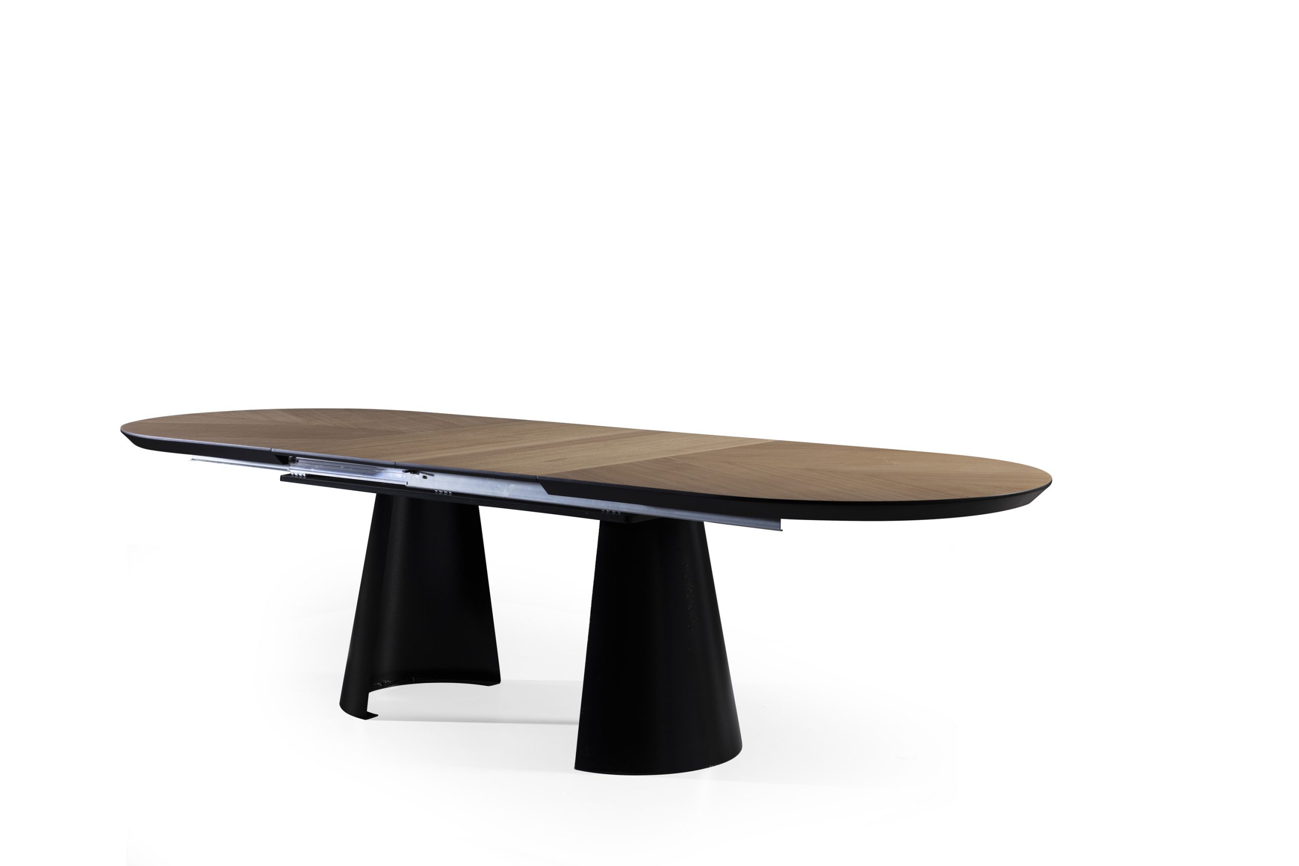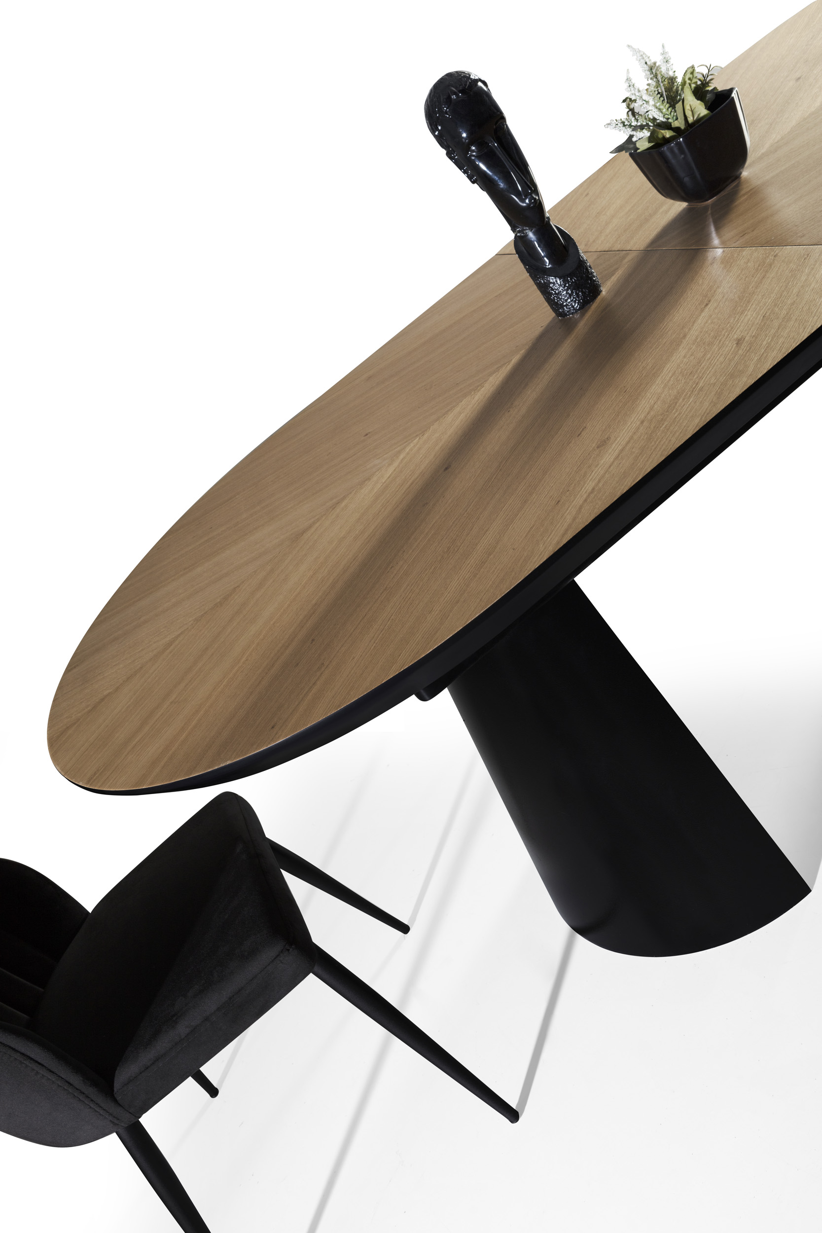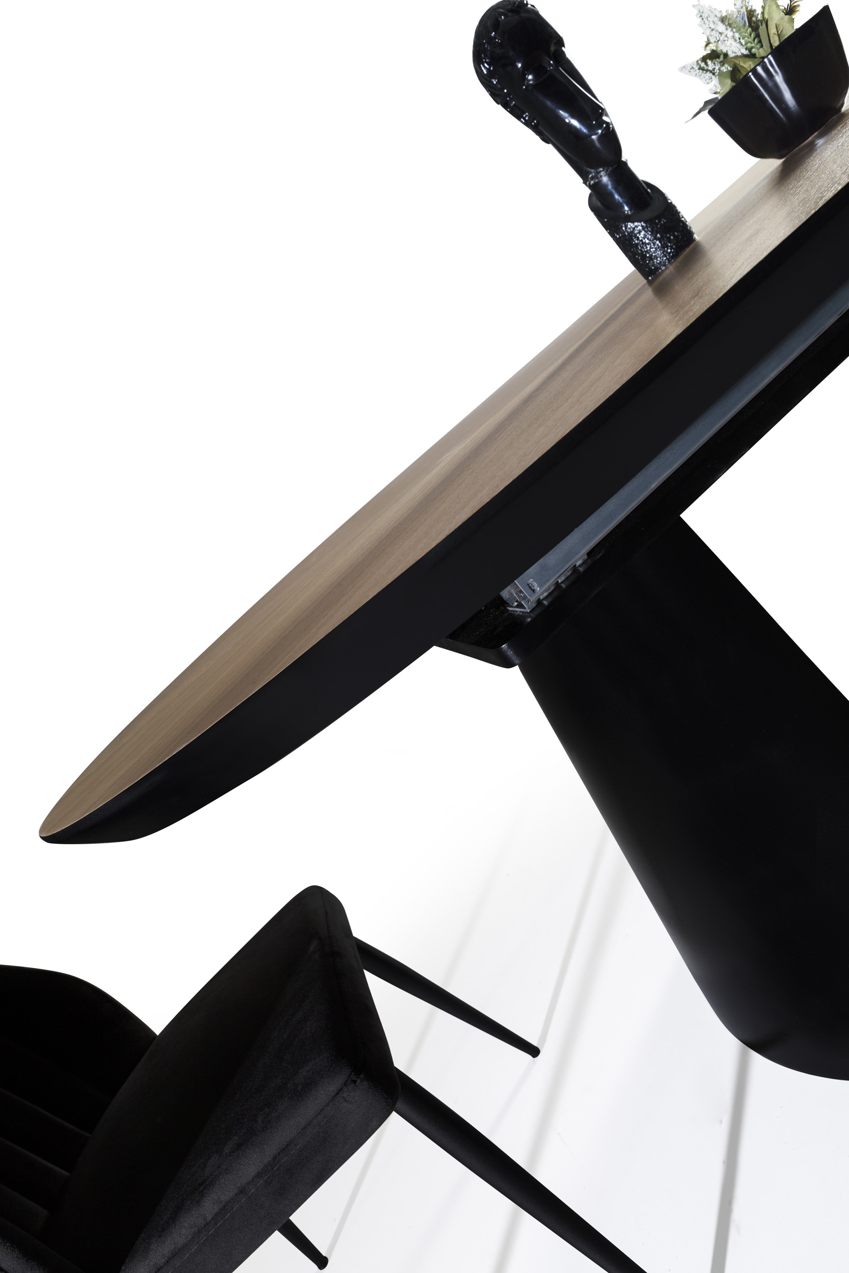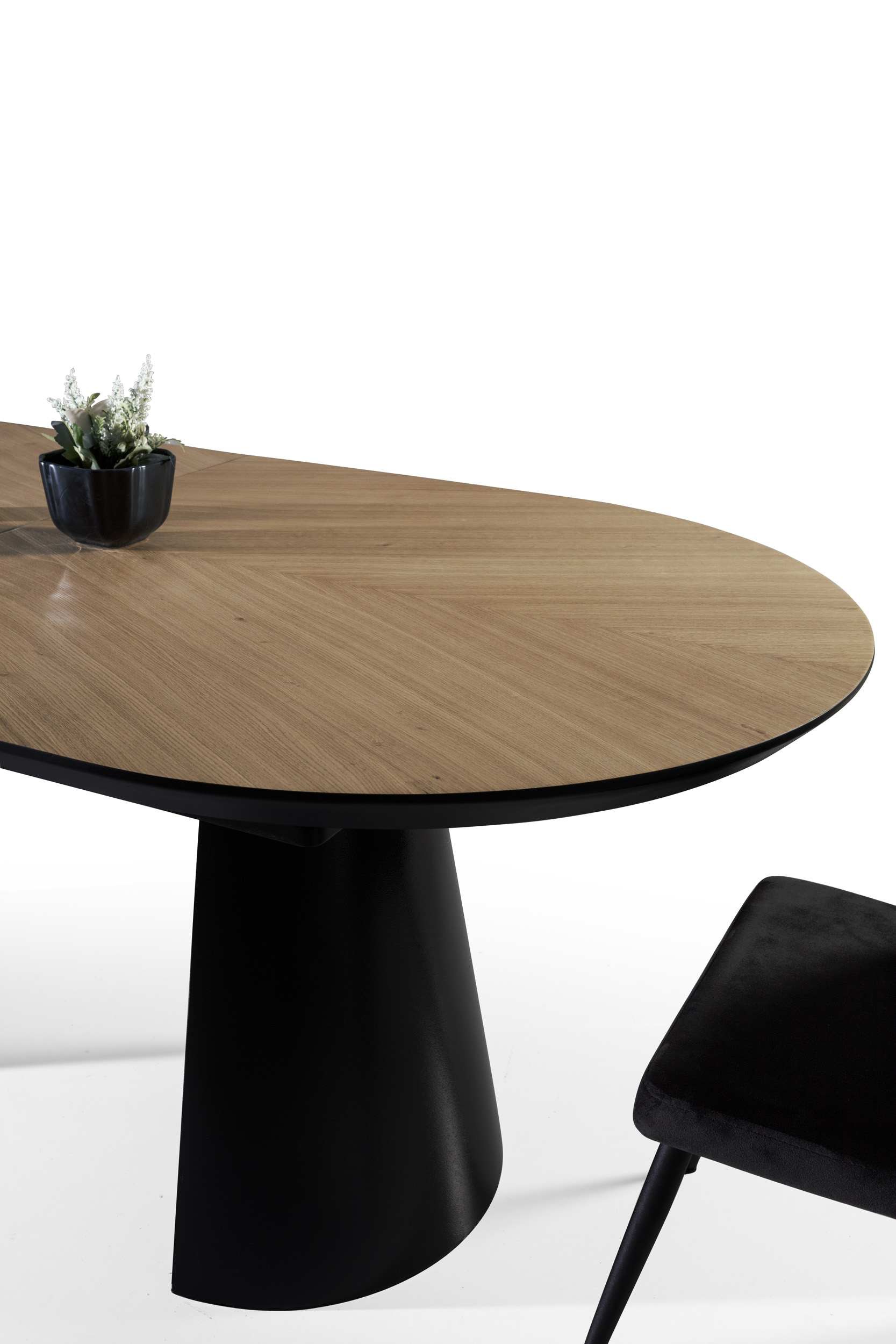 Les pieds noir métallique en forme arrondie de cette table  à manger se combine à perfection avec le dessus de la table couleur bois pura.